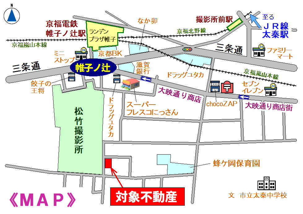 | 学校区 | 嵯峨野小学校まで約420m(徒歩6分) / 蜂ケ岡中学校まで約690m(徒歩9分) | ||